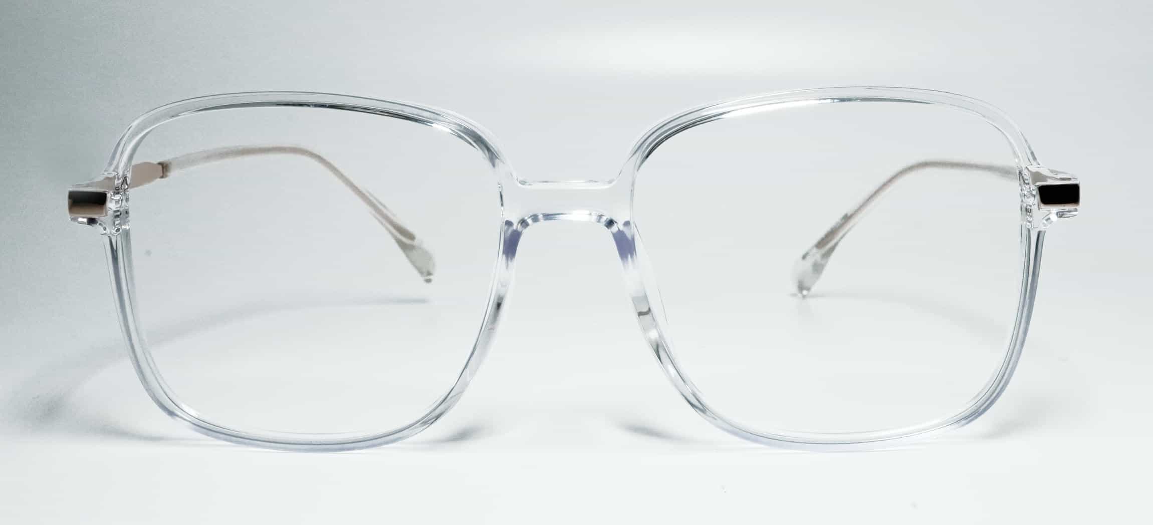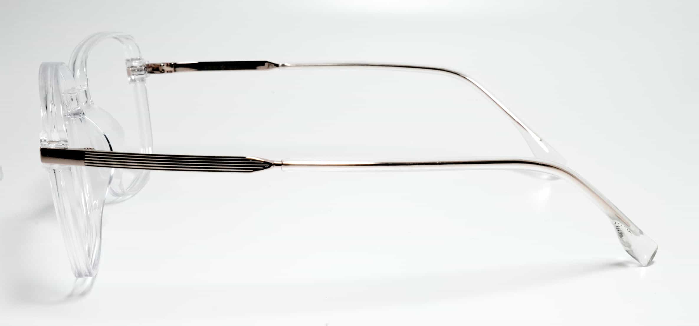 Clear color TR90 front paired with gold metal sides for a stylish, lightweight, and premium eyewear look.